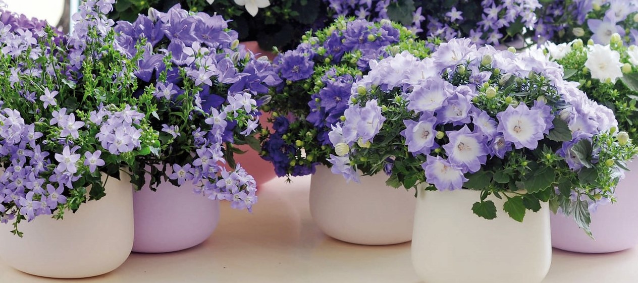 The flowers are also known as bellflowers. They owe this name to the bell shape. The flowers bloom in many different colours, including white, pink, purple and blue.